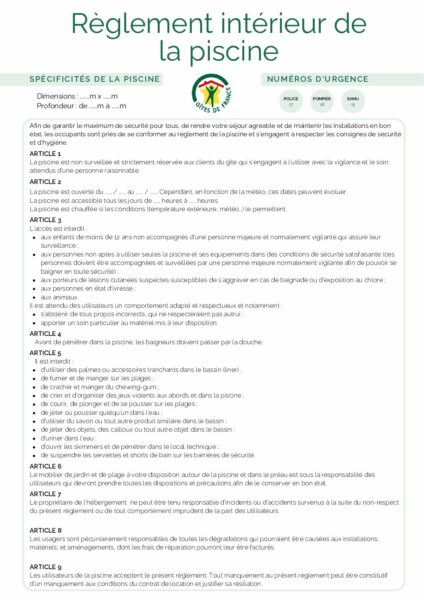 Règlement piscine